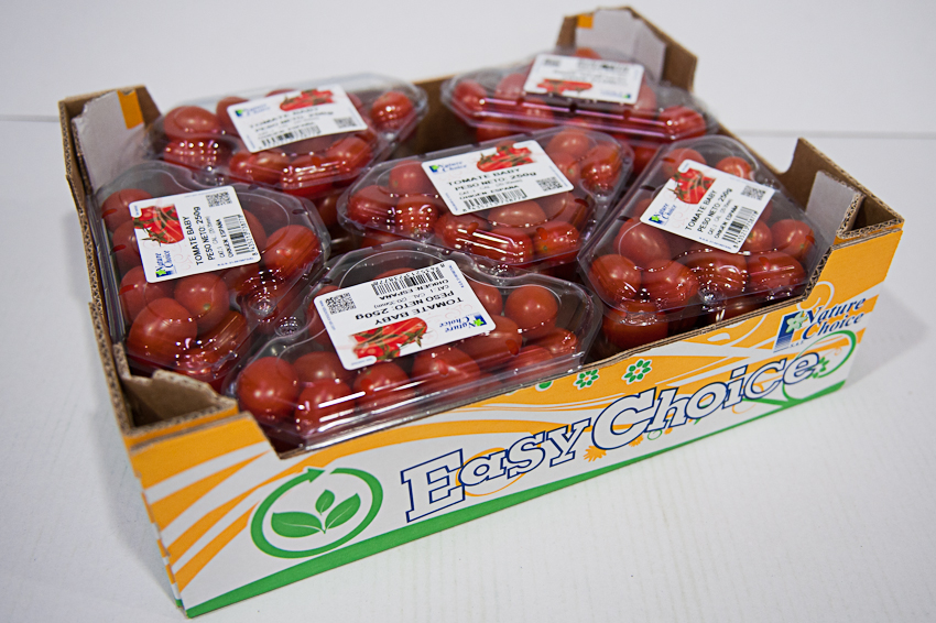 Tomate baby plum tarrina triangular 18×250 gr .